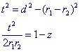 (t12)2 = (d12)2 - (r1-r2)2