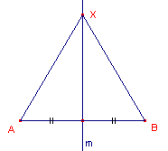 afstand hebben tot de punten A en B. Notatie { X | XA = XB }.